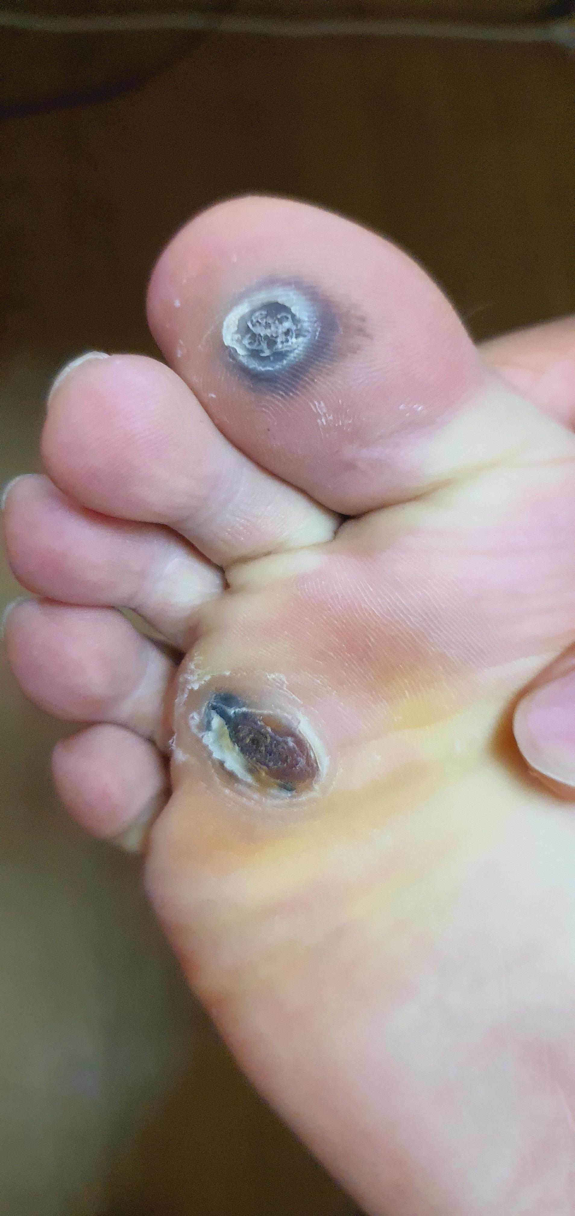 왼발 엄지발가락은 딱지가 있구요